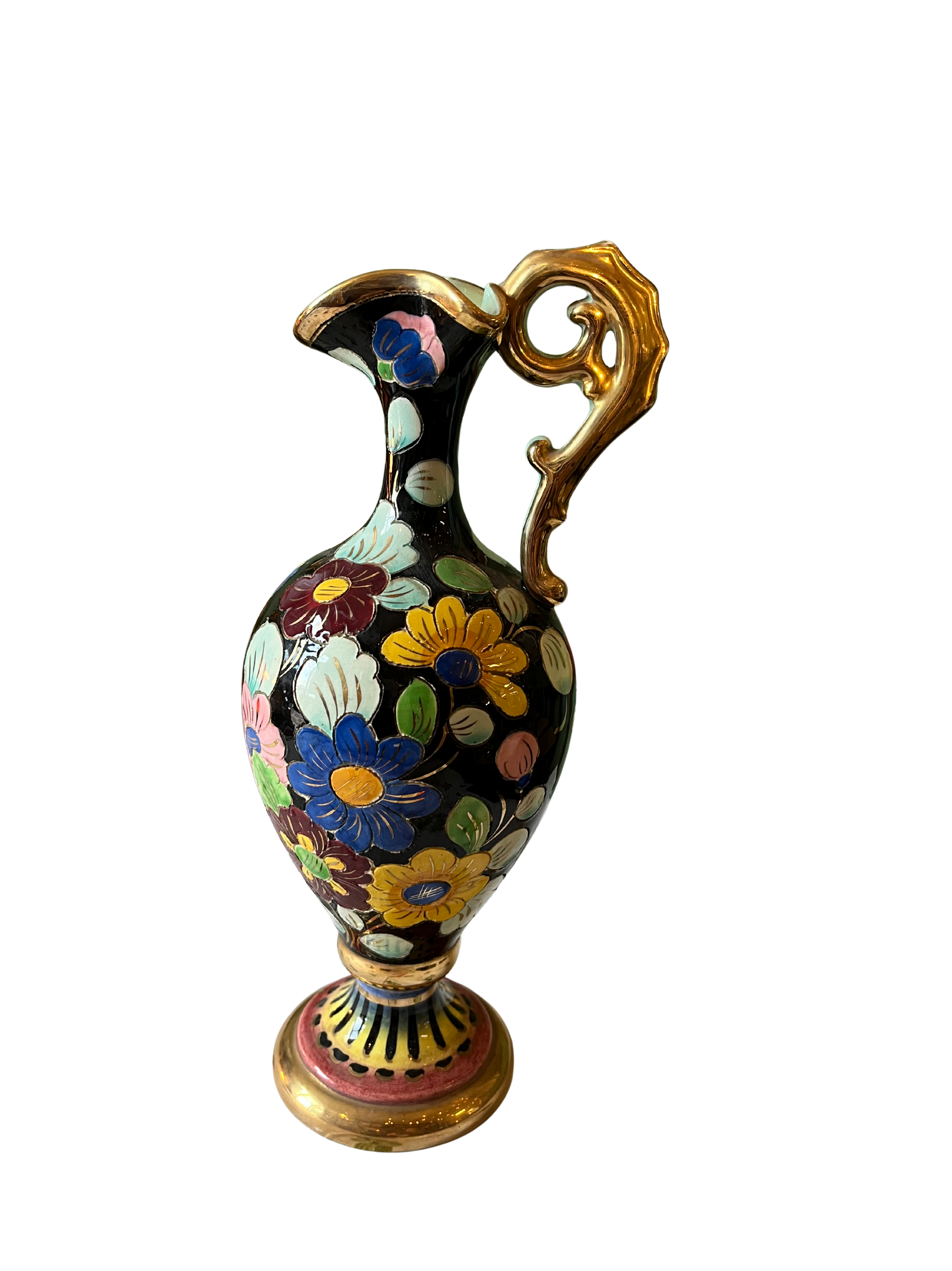 Pichet/aiguillère en céramique émaillée polychrome dorure au col signé Cerdazur Monaco