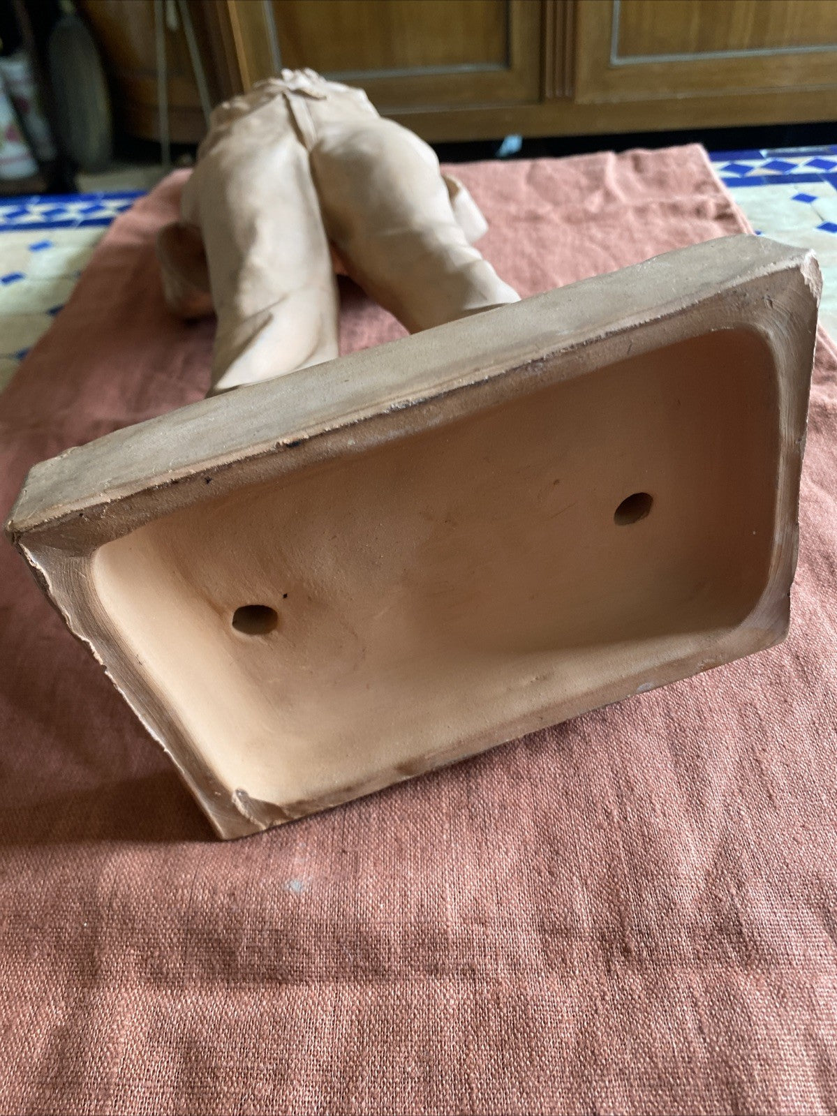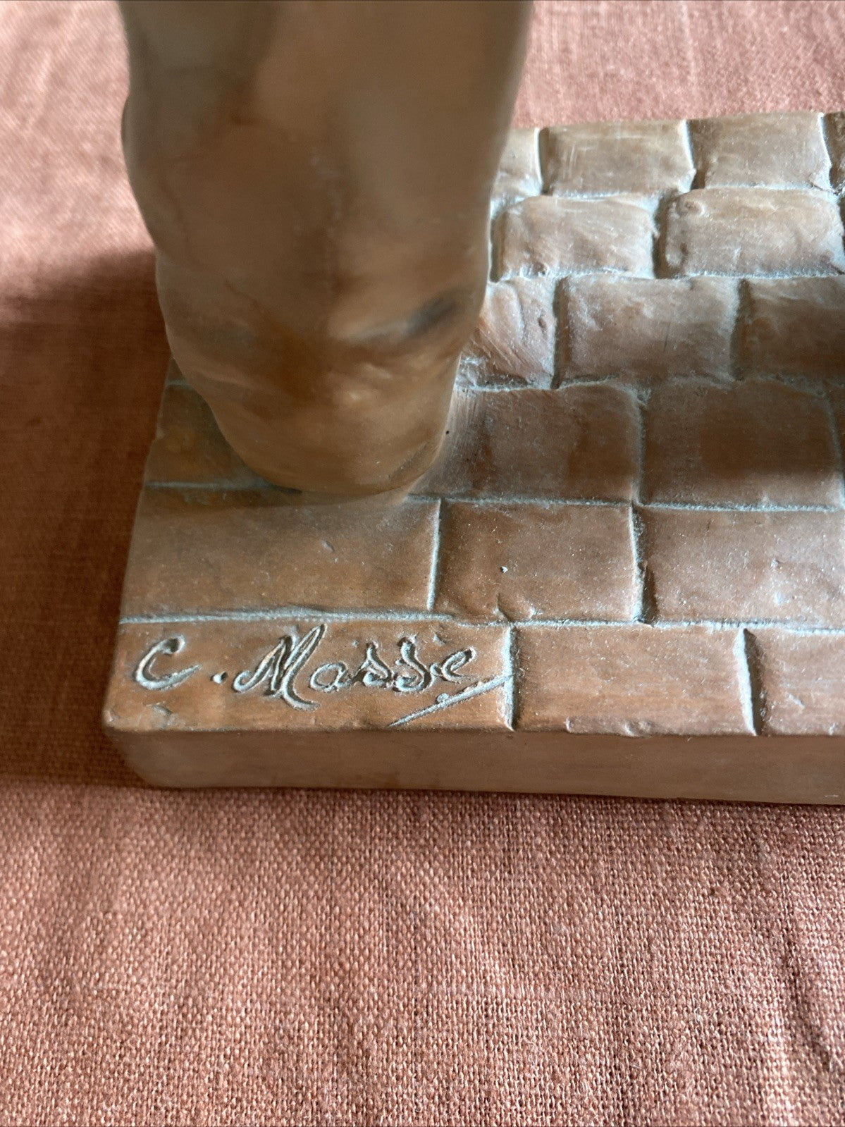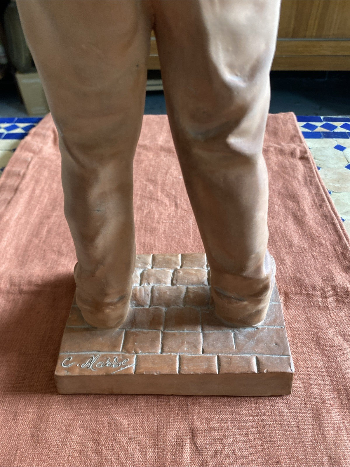 Statue ancienne en terre cuite – Jeune homme – Signée C. Massé